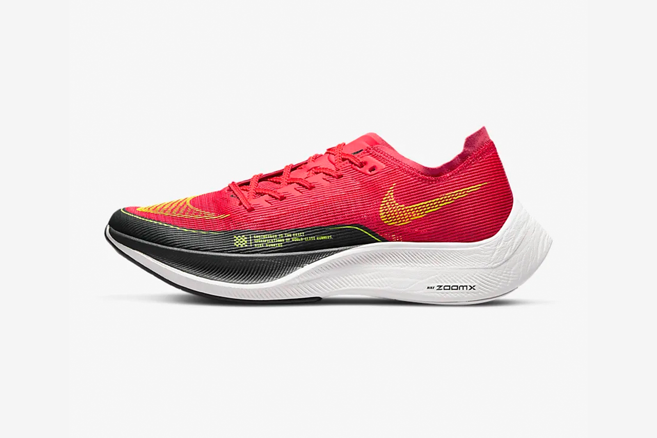 Engineered mesh material in the upper is softer and more breathable than Vaporweave. The mesh better conforms to the foot and helps keep feet cool throughout a race.