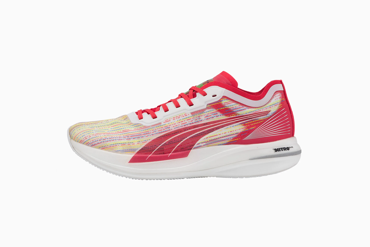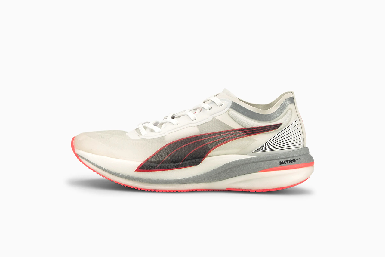Maximum performance for any distance. The DEVIATE NITRO is a cushioned silhouette that innovates the trend of max performance running shoes built to make running faster easier. The NITRO Foam and entire shoe are very light for the amount of responsive cushioning.
